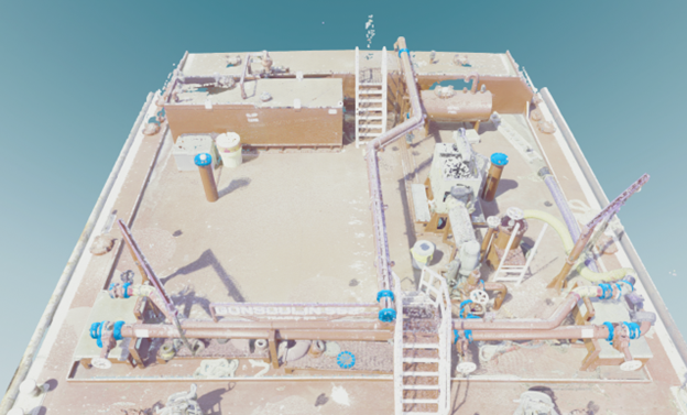 Point cloud of the pump deck portion of an oil-carrying barge.