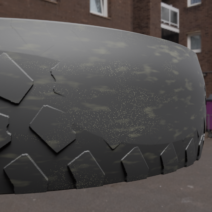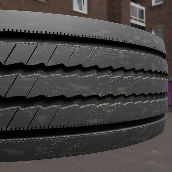 I created approximately 1000 images of tires. Example rendered synthetic images are shown below.