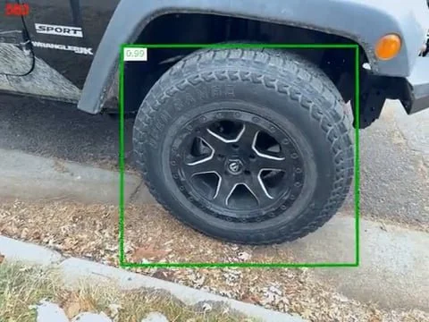The first task was to detect and identify wheels from a walk-around video. To do this I used a neural net model to detect wheels in images. The model was the “Faster RCNN Resnet50” model from PyTorch. I trained this on a public dataset of truck wheel images, as well as a collection of my own images that I hand labeled. The video below shows the detections in a walk-around video of a jeep.